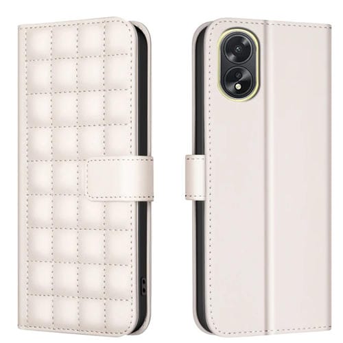 Funda de Cuero con Textura Cuadrada para Oppo A38 4G/A18 4G (Beige)