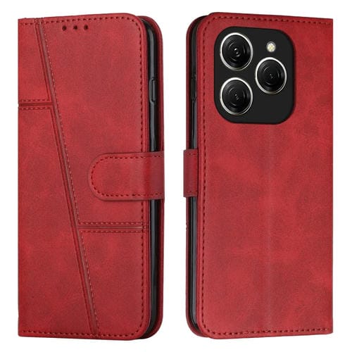 Funda de Cuero con Textura de Becerro y Hebilla para Tecno Spark 20 Pro 5G (Rojo)