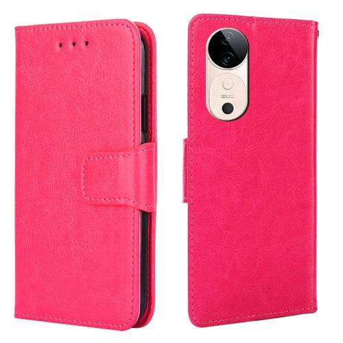 Funda de Cuero con Textura de Cristal para Teléfono Vivo S19 (Rosa Rojo)