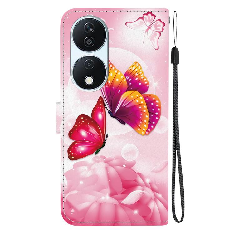Funda de Cuero con Textura de Cristal y Dibujo para Honor X7B Play 50 Plus (Mariposas Rosas)