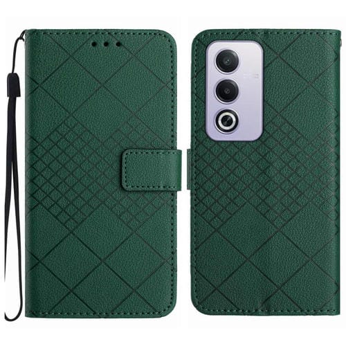 Funda de Cuero con Textura de Cuadrícula Rómbica para Teléfono Oppo A3 Pro 5G India/K12X 5G Global (Verde)