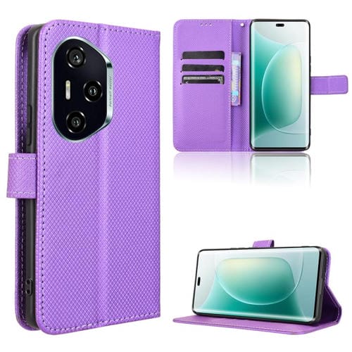 Funda de Cuero con Textura de Diamante para Honor 300 Pro 5G y 300 Ultra 5G (Morado)