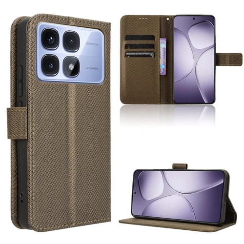 Funda de Cuero con Textura de Diamante para Redmi K70 Ultra (Marrón)