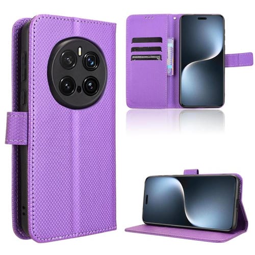 Funda de Cuero con Textura de Diamante para Honor Magic7 Pro (Morada)