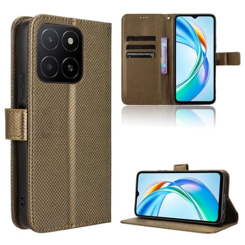 Funda de Cuero con Textura de Diamante para Honor X5B 4G (Marrón)