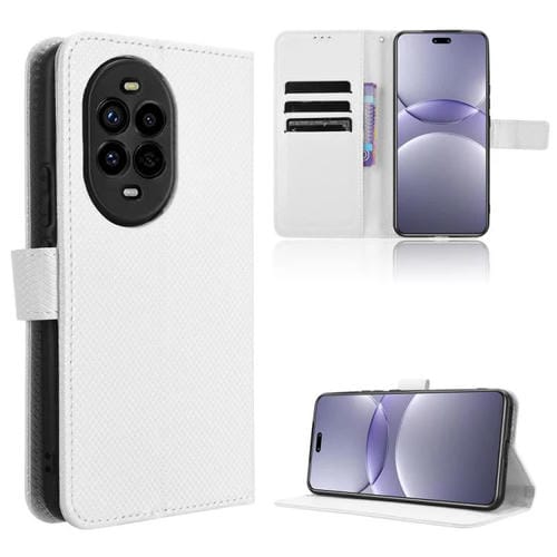 Funda de Cuero con Textura de Diamante para Huawei Nova 13 Pro 5G (Blanca)