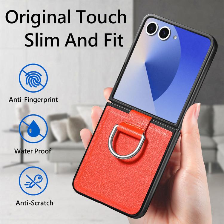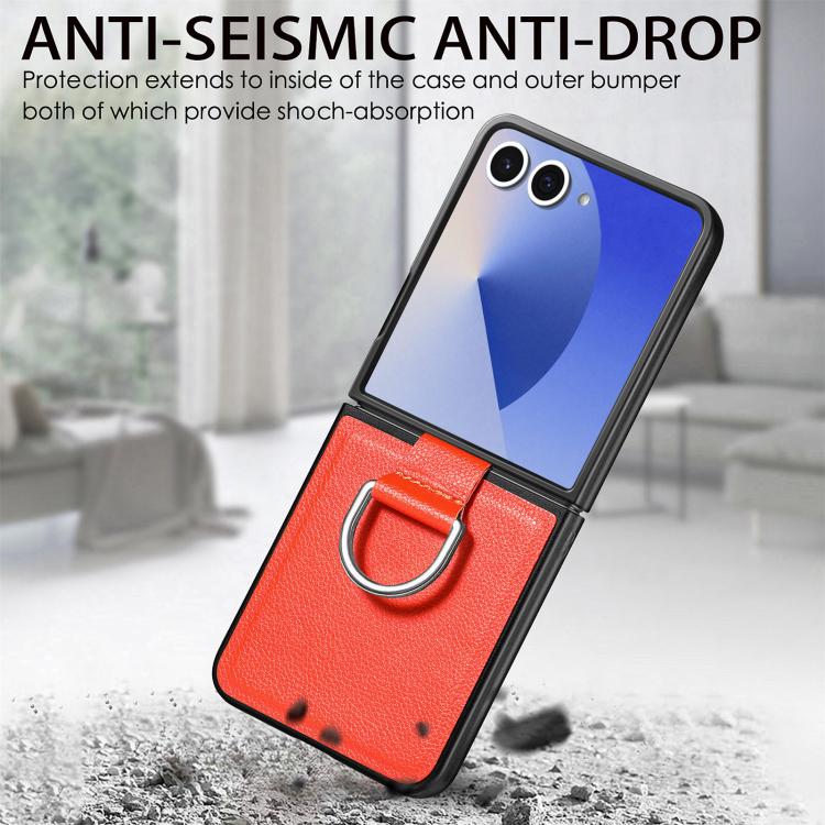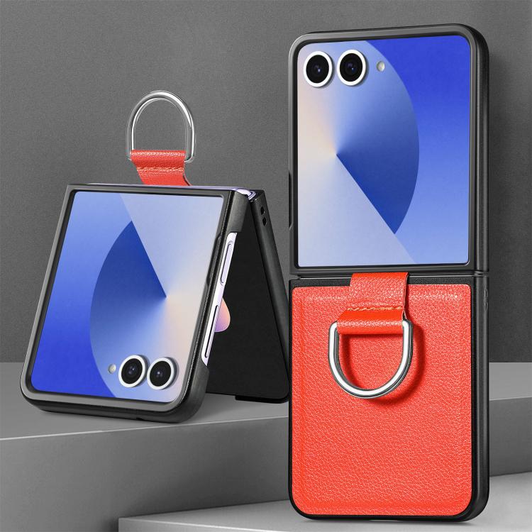 Funda de cuero con textura de lichi para Samsung Galaxy Z Flip7 5G (naranja)