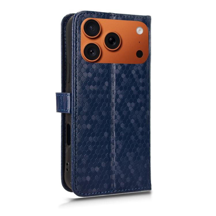 Funda de cuero con textura de lunares y panal para iPhone 17 Pro Max (azul)