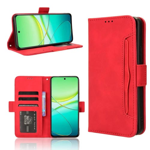 Funda de Piel con Textura de Becerro y Ranuras para Tarjetas para Vivo Y58 5G (Roja)