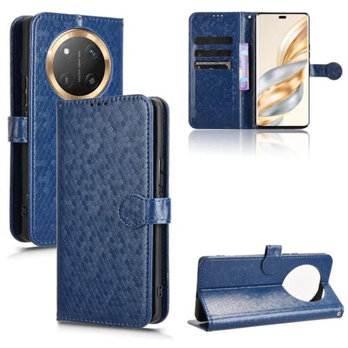 Funda de Cuero con Textura de Puntos de Panal para Honor X9C 5G y Magic7 Lite 5G (Azul)