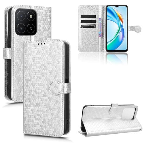 Funda de Cuero con Textura de Puntos Panal para Honor X5B 4G y X5B Plus 4G (Plateada)