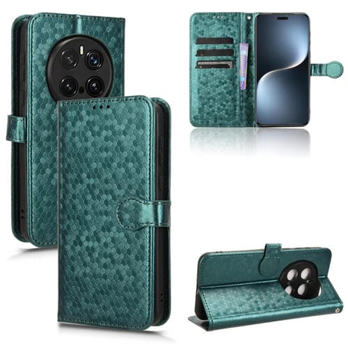 Funda de Cuero con Textura de Panal para Honor Magic7 Pro 5G (Verde)