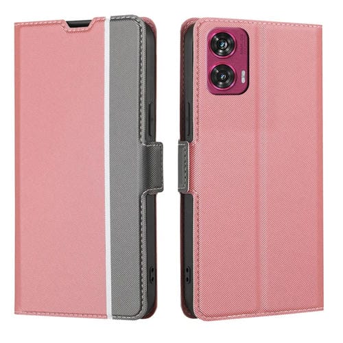 Funda de Cuero con Textura de Sarga y Botones Laterales para Motorola Edge 50 Fusion 5G (Rosa)