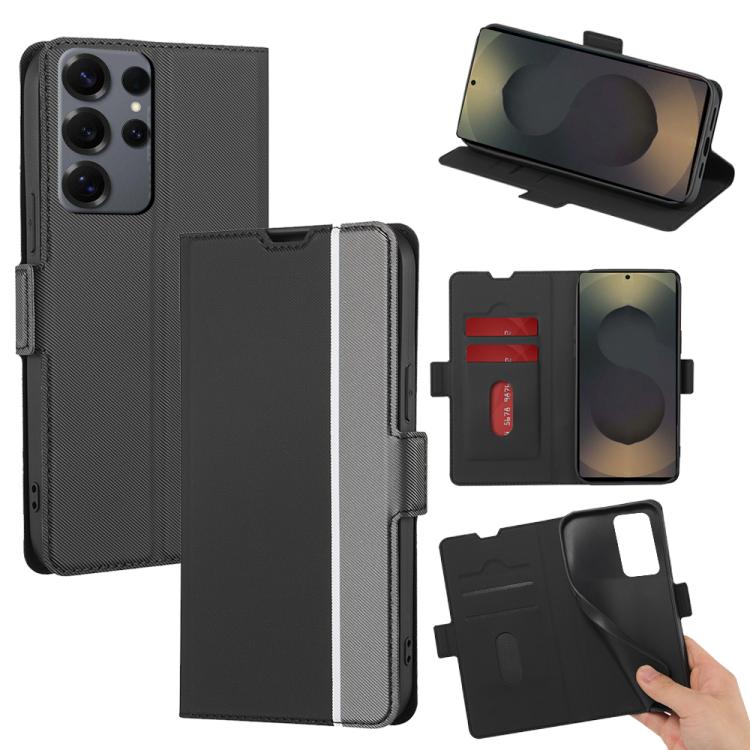 Funda de cuero con textura de sarga y botones laterales para Samsung Galaxy S25 Ultra 5G (negra)