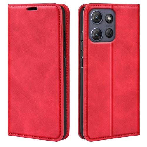 Funda de Cuero con Ventosa Magnética Motorola Moto G Power 2025 Retro-Skin (Rojo)