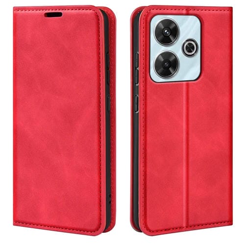 Funda de Cuero con Ventosa Magnética para Xiaomi Redmi Note 13R Retro-Skin (Roja)