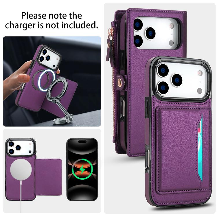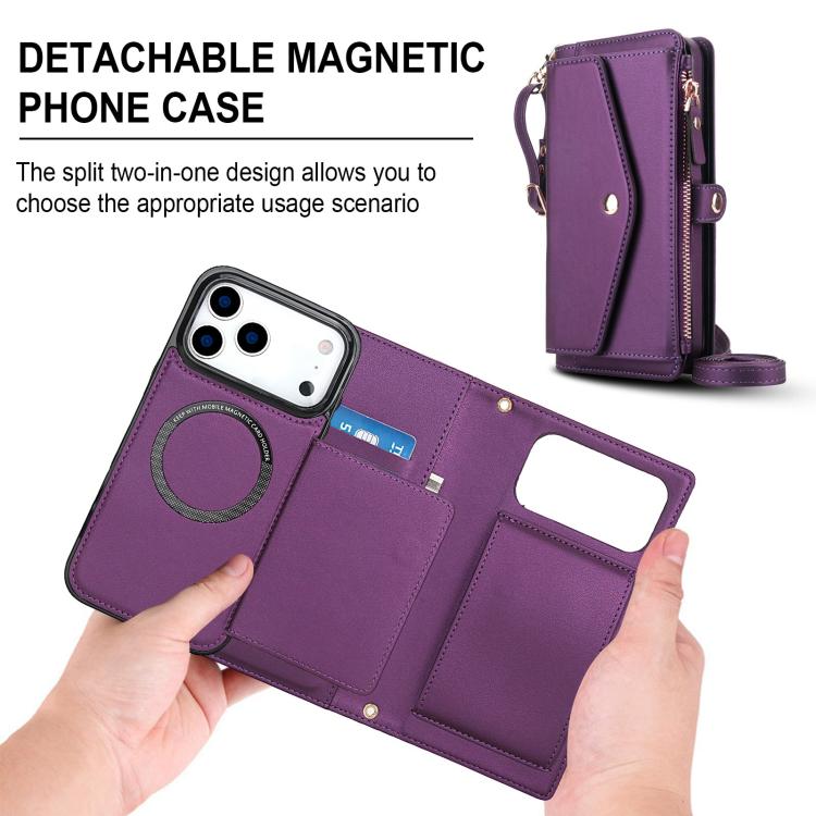 Funda de cuero desmontable con cordón para iPhone 17 Pro Max (morado oscuro)