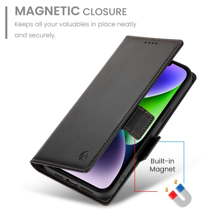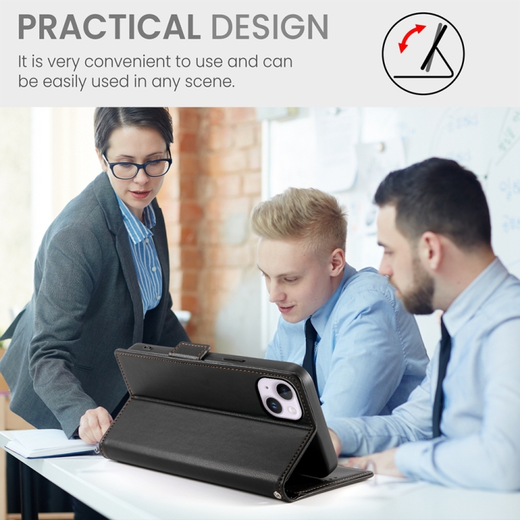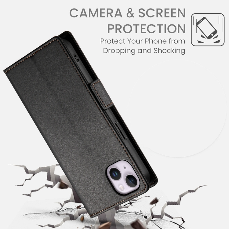 Funda de Cuero Esmerilado con Hebilla Lateral Magnética para iPhone 14 Plus (Negro)