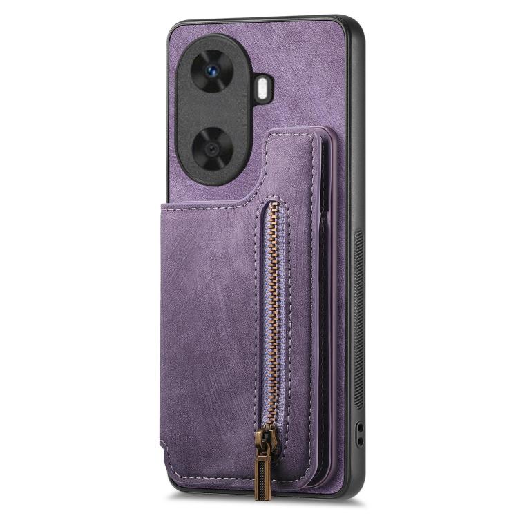 Funda de Cuero Estilo Retro con Cremallera para Huawei Enjoy 60 (Morado)