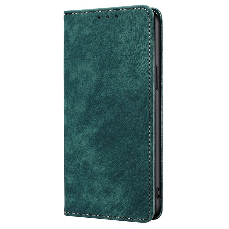 Funda de Cuero Magnética con Cepillo Antirrobo RFID para Teléfono Itel P65 (Verde)