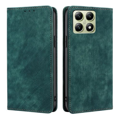 Funda De Cuero Magnética Con Cepillo Antirrobo Rfid Para Teléfono Xiaomi 14T 5G (Verde)