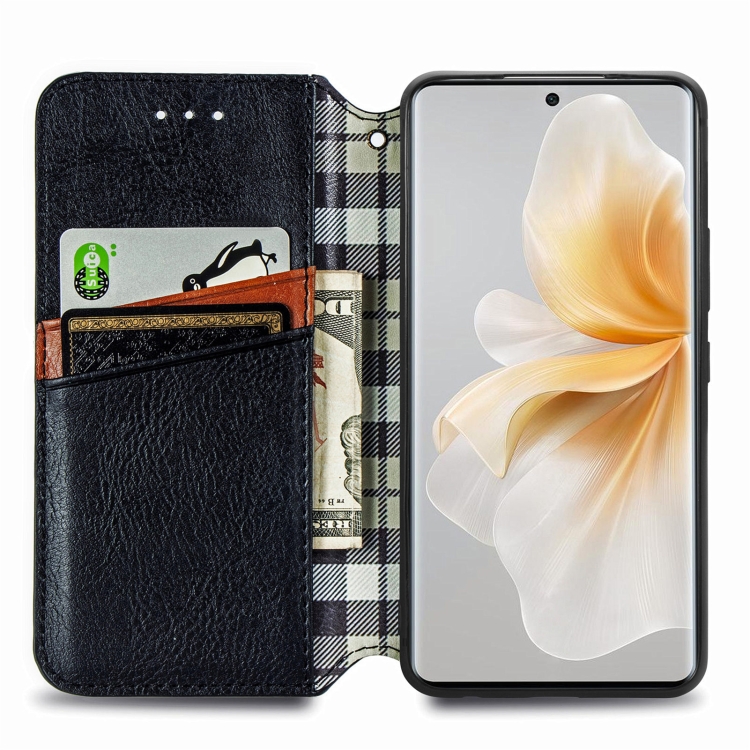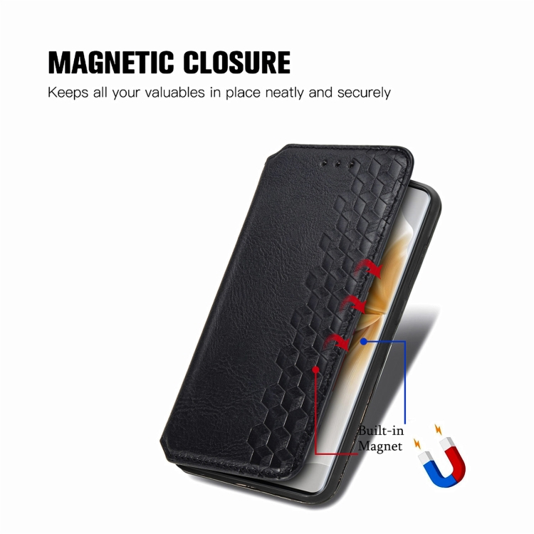 Funda de Cuero Magnética con Rejilla Cúbica para TCL 50 5G (Negra)