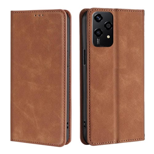 Funda de Cuero Magnética con Tacto de Piel Global para Honor 200 Lite 5G (Marrón Claro)