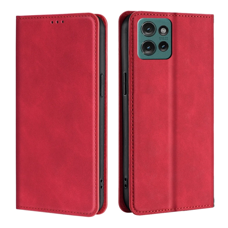 Funda de Cuero Magnética para Motorola Edge 50 5G (Roja) con Tacto de Piel