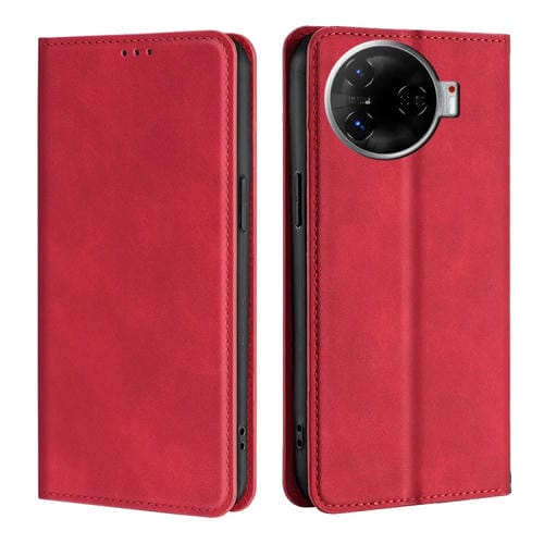 Funda de Cuero Magnética con Tacto de Piel para Tecno Camon 30 Pro 5G (Roja)