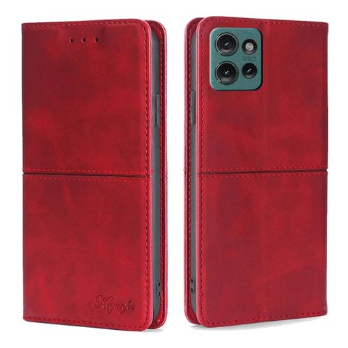 Funda de Cuero Magnética con Textura de Vaca para Motorola Edge 50 5G (Rojo)