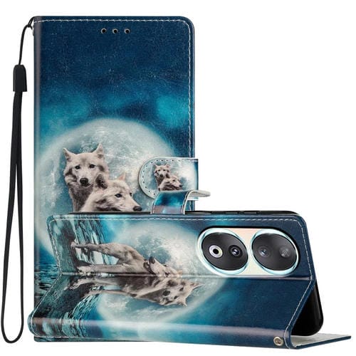 Funda de Cuero para Honor 90 con Dibujo de Colores Lobos Gemelos