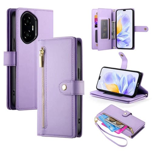 Funda de Cuero para Honor 300 Pro y 300 Ultra con 9 Ranuras y Cremallera (Morado)