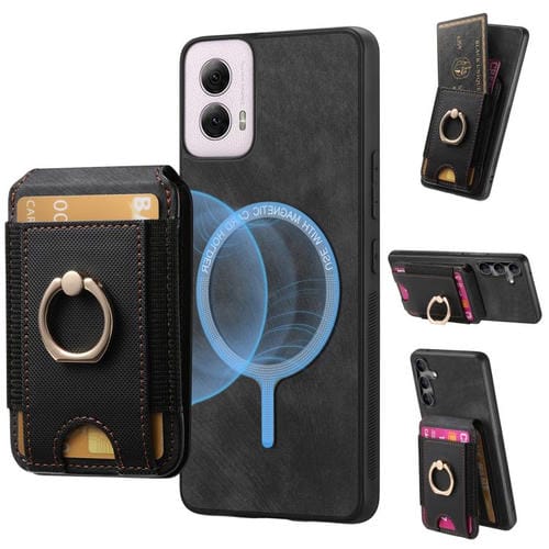 Funda de Cuero para Motorola Moto G Power 5G 2024 con Soporte Magnético Divisible (Negro)