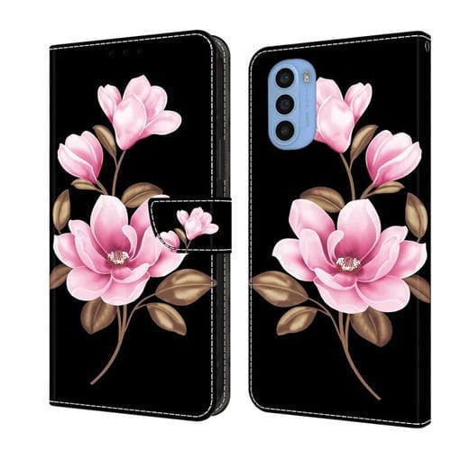 Funda de Cuero Pintada a Mano Motorola Moto G31 con Diseño de Flores Negras