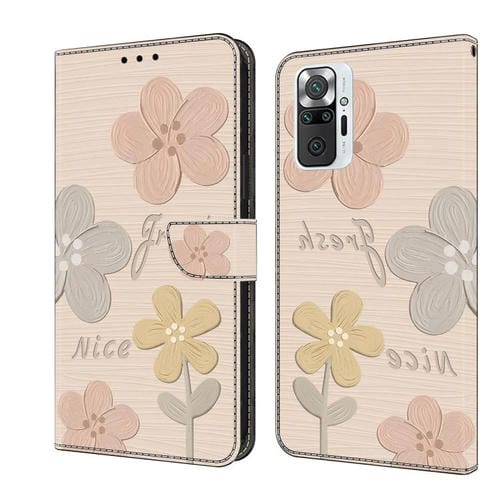 Funda de Cuero Pintada a Mano para Redmi Note 10 Pro 4G (Flores Beige)