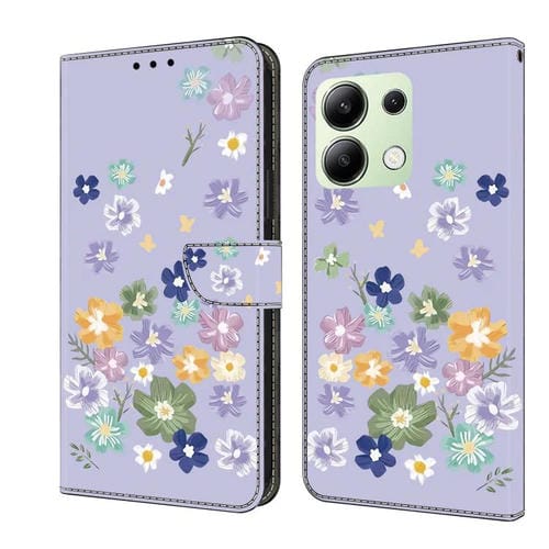 Funda de Cuero Pintada a Mano para Redmi Note 13 4G (Floral Morado)