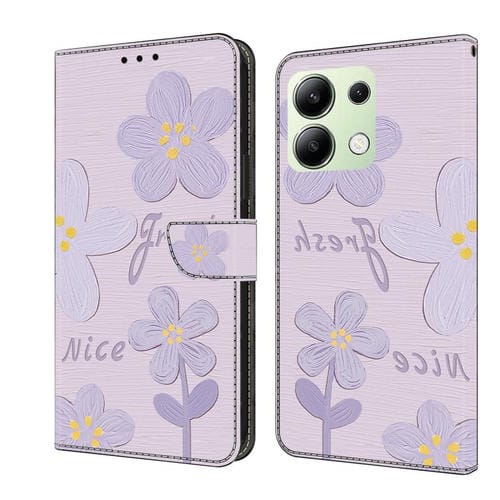 Funda de Cuero Pintada a Mano para Redmi Note 13 4G (Flores de Color Morado Oscuro)