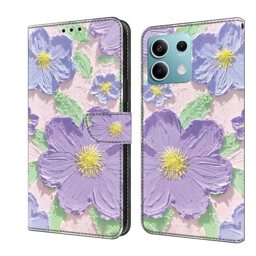 Funda de Cuero Pintada a Mano para Redmi Note 13 5G (Pintura al Óleo de Flores Moradas)