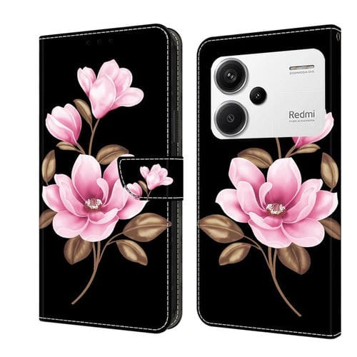 Funda de Cuero Pintada a Mano para Redmi Note 13 Pro+ (Flores Negras)