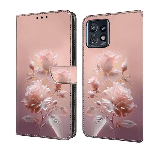 Funda de Cuero Pintada a Mano Motorola Edge+ 2023 con Flores de Cerámica
