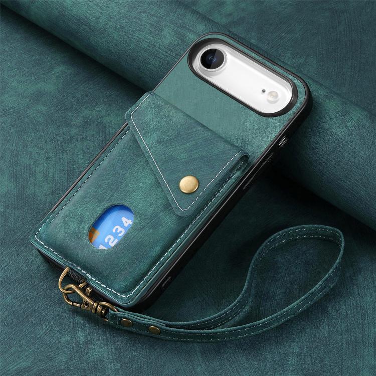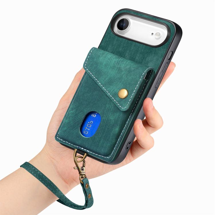 Funda de cuero plegable con correa para iPhone Air, estilo retro, tipo billetera (verde)