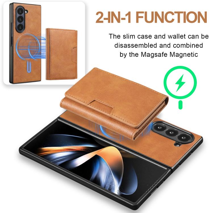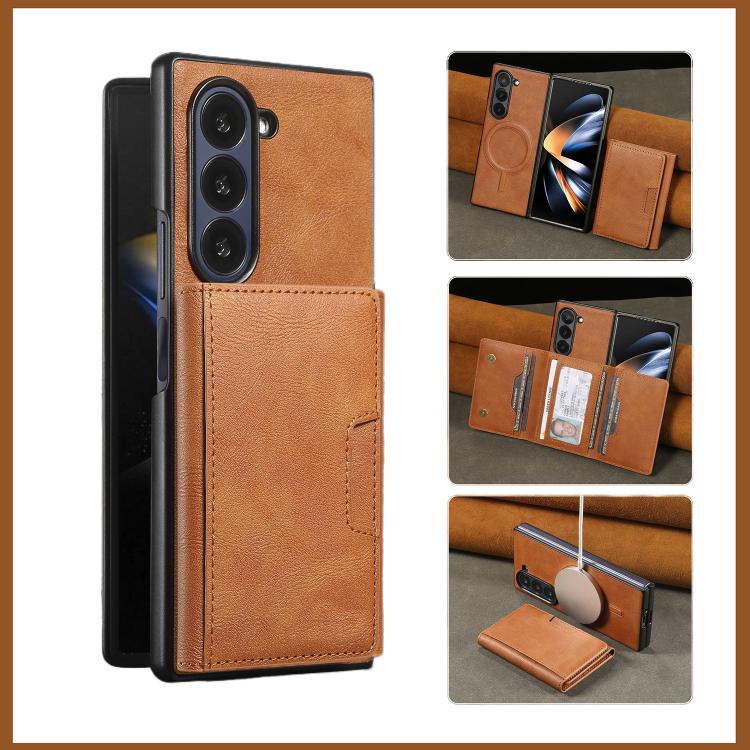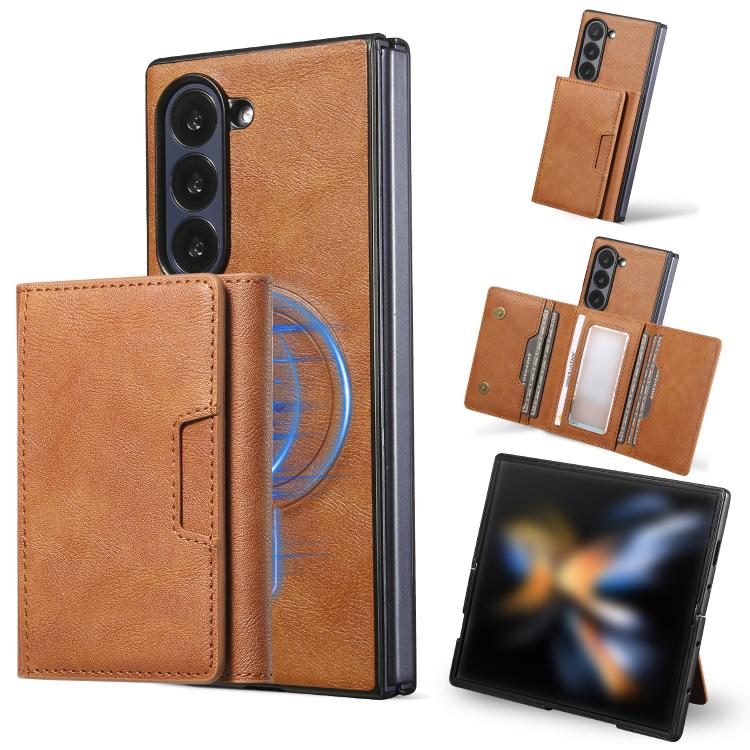 Funda de cuero plegable triple con imán fuerte Kalebol para Samsung Galaxy Z Fold6 (marrón)