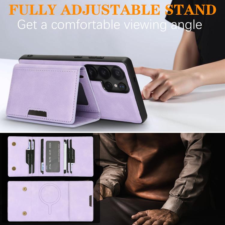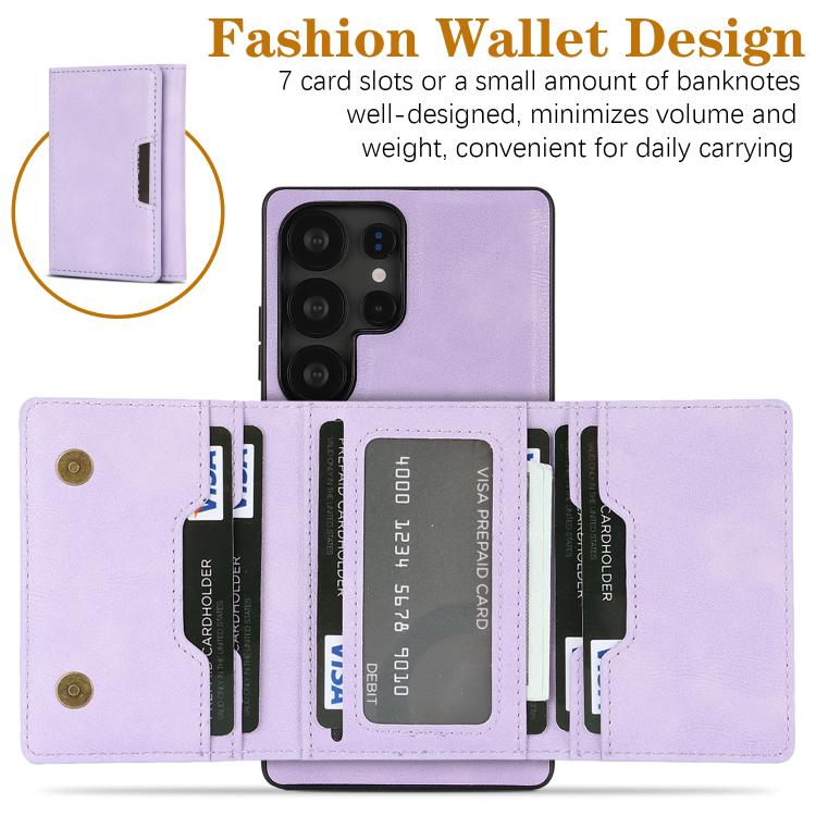 Funda de cuero plegable triple Kalebol con imán fuerte MagSafe para Samsung Galaxy S24 Ultra 5G (morado)