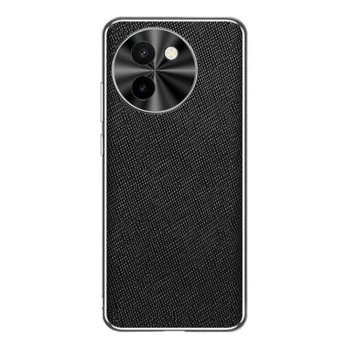 Funda de Cuero Pu con Textura Cruzada y Borde Plateado para Vivo Y200T (Negro)