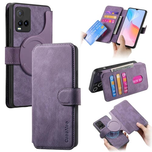 Funda de Cuero Retro Antirrobo con Rfid y Magsafe para Vivo Y21S/Y32/Y21T/Y3T (Morado)