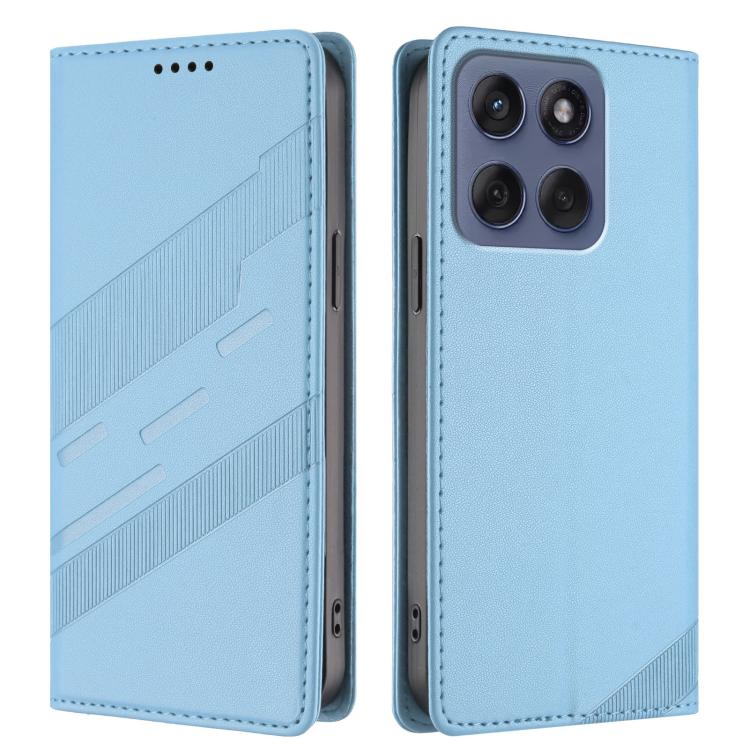 Funda de cuero retro con relieve para Motorola Edge 60 Fusion (azul claro)