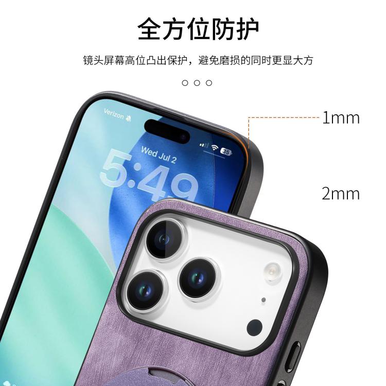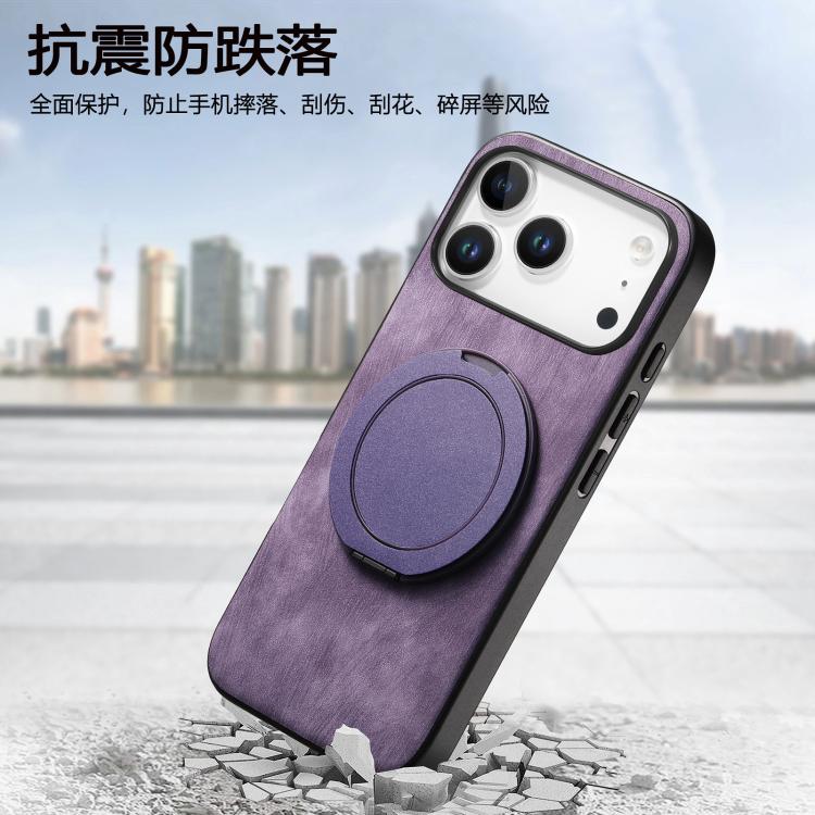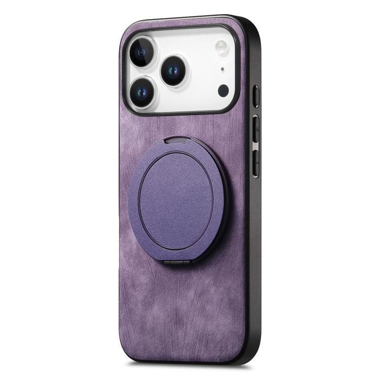 Funda de cuero retro con soporte giratorio redondo para iPhone 17 Pro Max (morado)