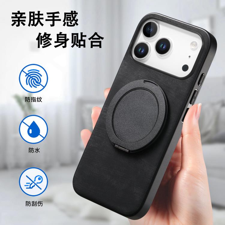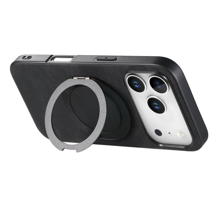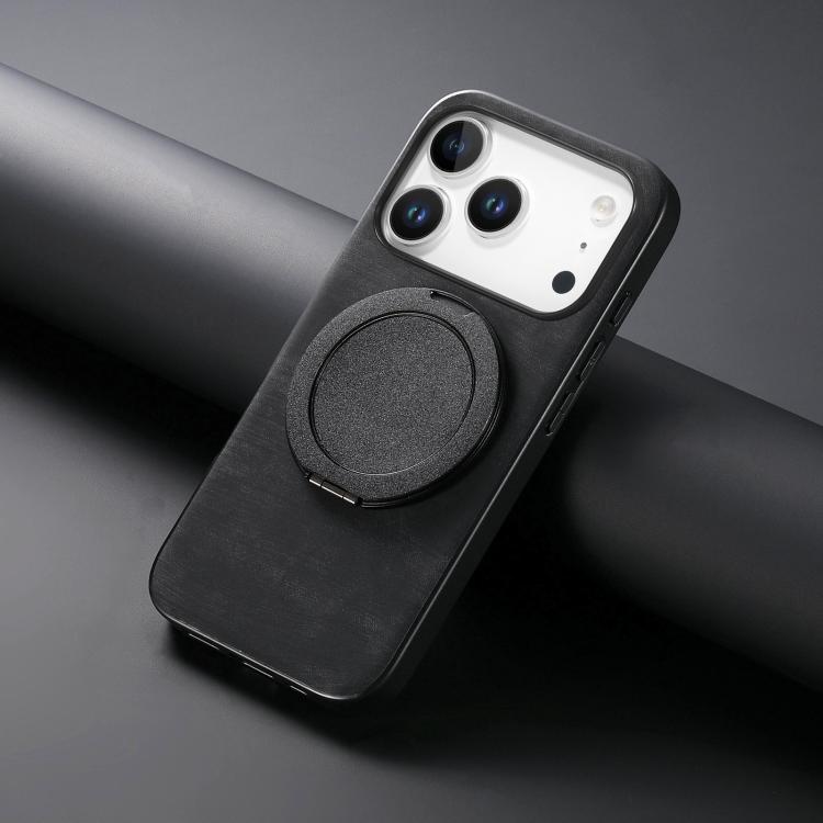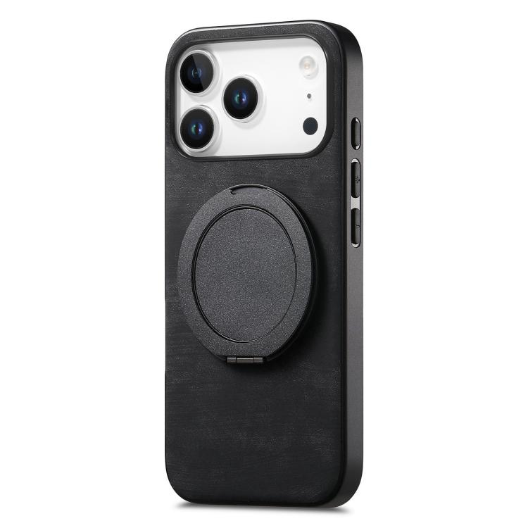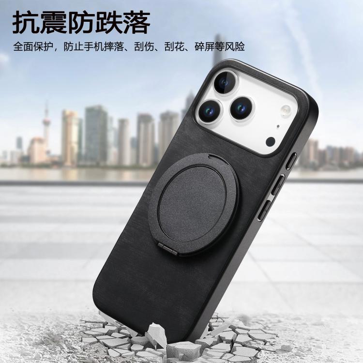 Funda de cuero retro con soporte giratorio redondo para iPhone 17 Pro Max (negro)