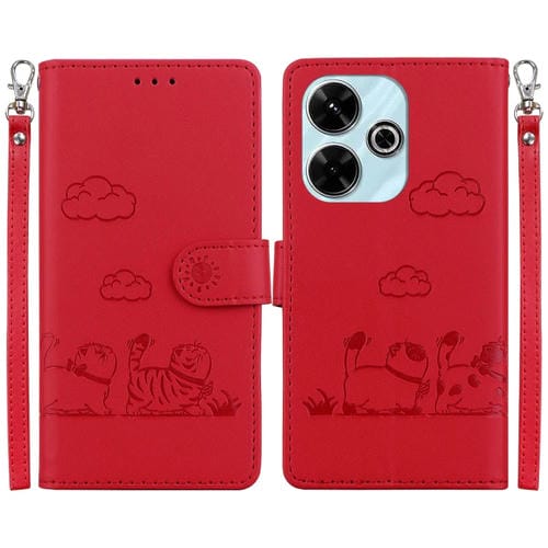 Funda de Cuero Rfid con Diseño de Gatos para Xiaomi Poco M6 4G (Roja)
