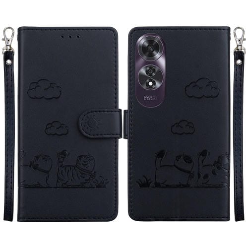 Funda de Cuero Rfid con Diseño de Gatos para Oppo A60 4G (Negra)